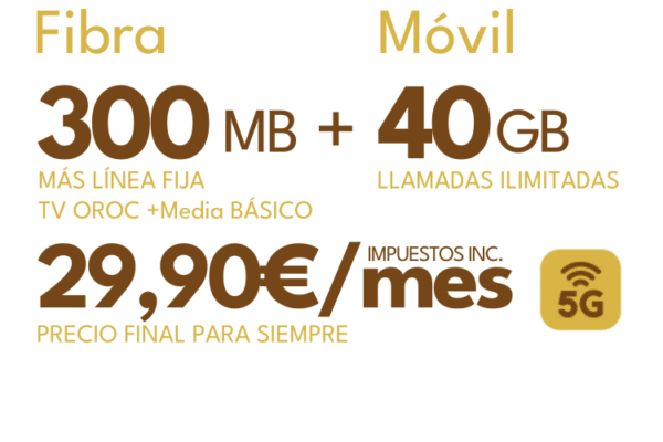 - Fibra Simétrica de 300Mbps (300 de bajada y 300 de subida simultáneos).